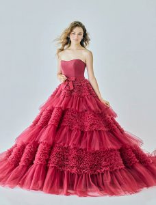シンプルな上半身のビスチェにたっぷりと生地を使ったボリュームスカートがスタイルをより良く見せてくれます